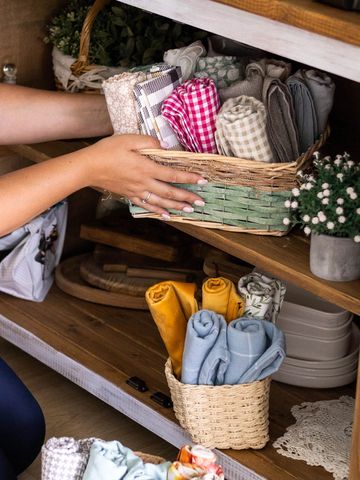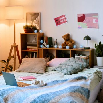 Arrange and fluff pillows and blankets